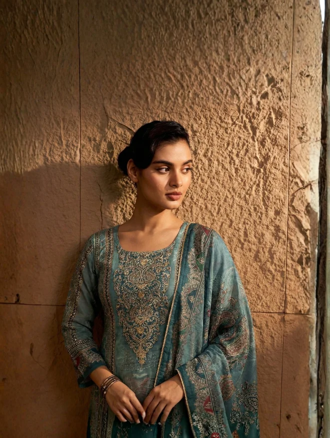 Floral Printed Churidar Set – Party Wear